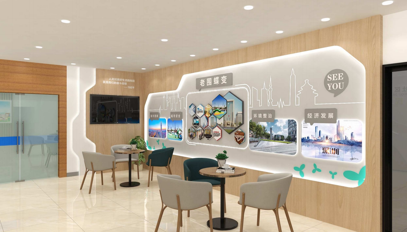 老圍蝶變,老圍社區黨群中心展廳設計,社區黨建文化墻設計,完美落地。