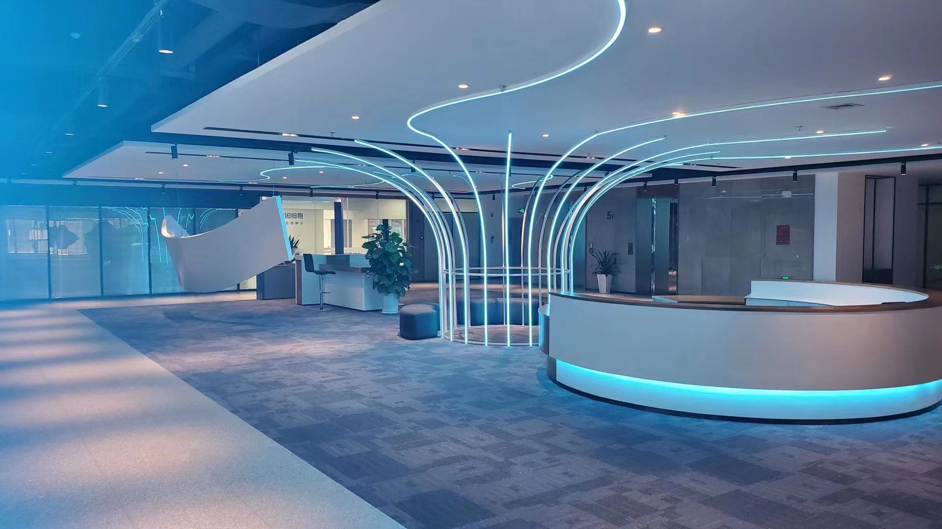 這也是很少見,客戶也很少用的,那就是做創(chuàng)意,做藝術性,把整個展廳展示空間設計的非常有創(chuàng)意,非常有藝術性,而且還不落科技感,這種設計就非常超前,非常了不起。因為這種創(chuàng)意及藝術性非常超前,所以很多客戶還是接收不了。